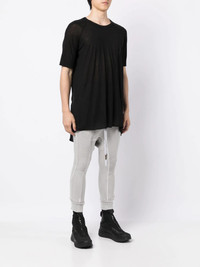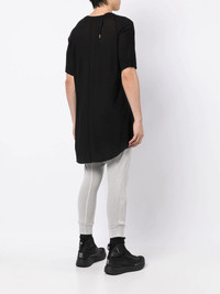 raglan short-sleeved T-shirt jet black cotton round neck short raglan sleeves high-low hem Imported Composition Cotton 50%, Polyester 50% SIZE & FIT Model measurements Height 6 ft 0 in(1.83 m) Bust/Chest 37.79 in(96 cm) Hips 37 in(94 cm) Waist 30.31 in(77 cm) FittingInformation This piece fits true to size. We recommend you get your regular size Cut for a loose fit Made with a mid-weight fabric Washing instructions Hand Wash