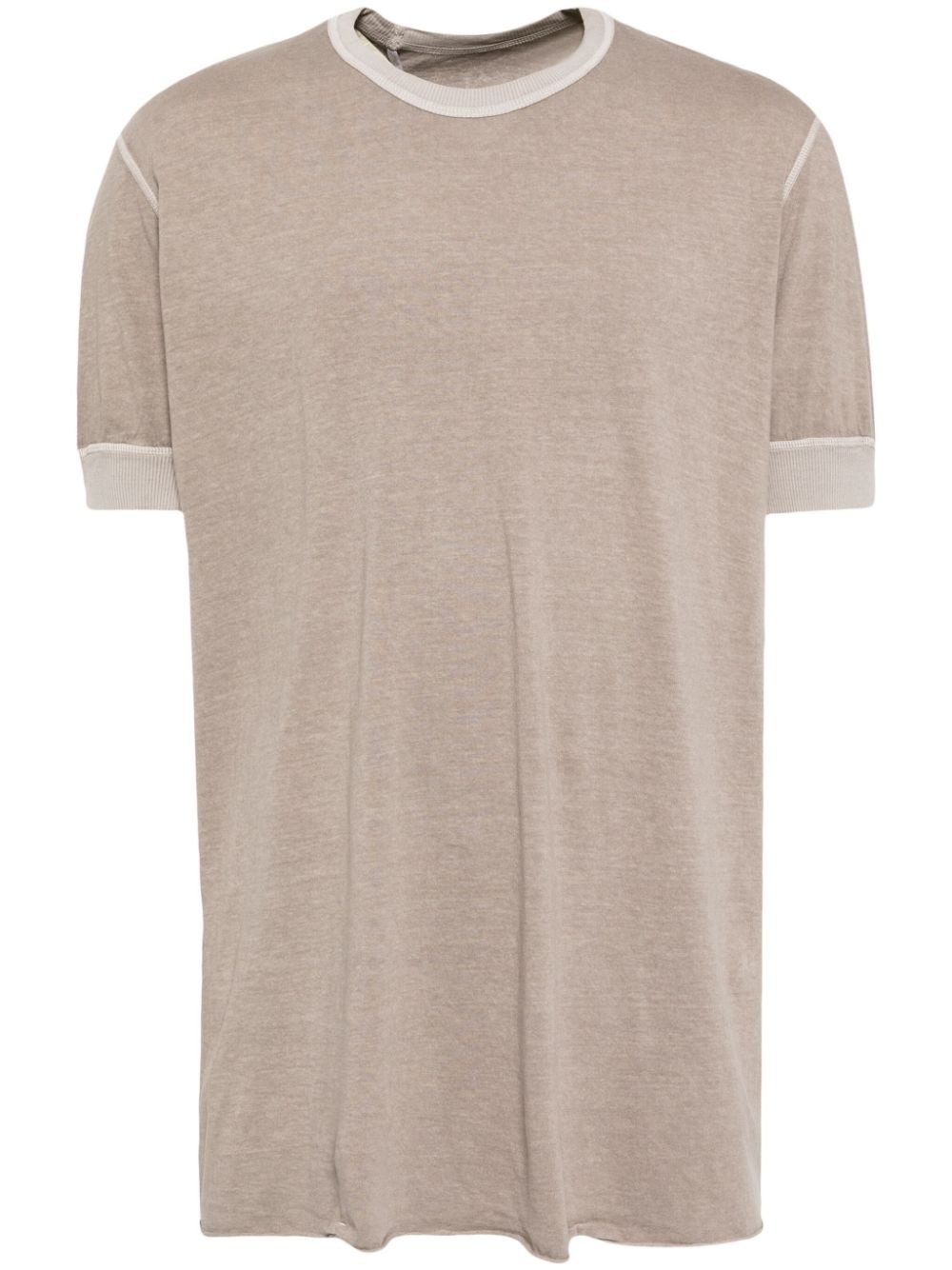 raw-cut hem cotton T-shirt Highlights - Light carbon - Cotton - Two-tone design - Lace-up detailing - Contrasting collar - Round neck - Drop shoulder - Short sleeves - Raw-cut edge - Ribbed cuffs Imported Composition Cotton 100% SIZE & FIT Model measurements Height 6 ft 2 in(1.88 m) Bust/Chest 34.25 in(87 cm) Hips 34.64 in(88 cm) Waist 26.77 in(68 cm) FittingInformation Designed for a relaxed fit, this piece allows for comfort and movement when worn Made from a lightweight non-stretch fabric, this piece offers minimal elasticity when worn