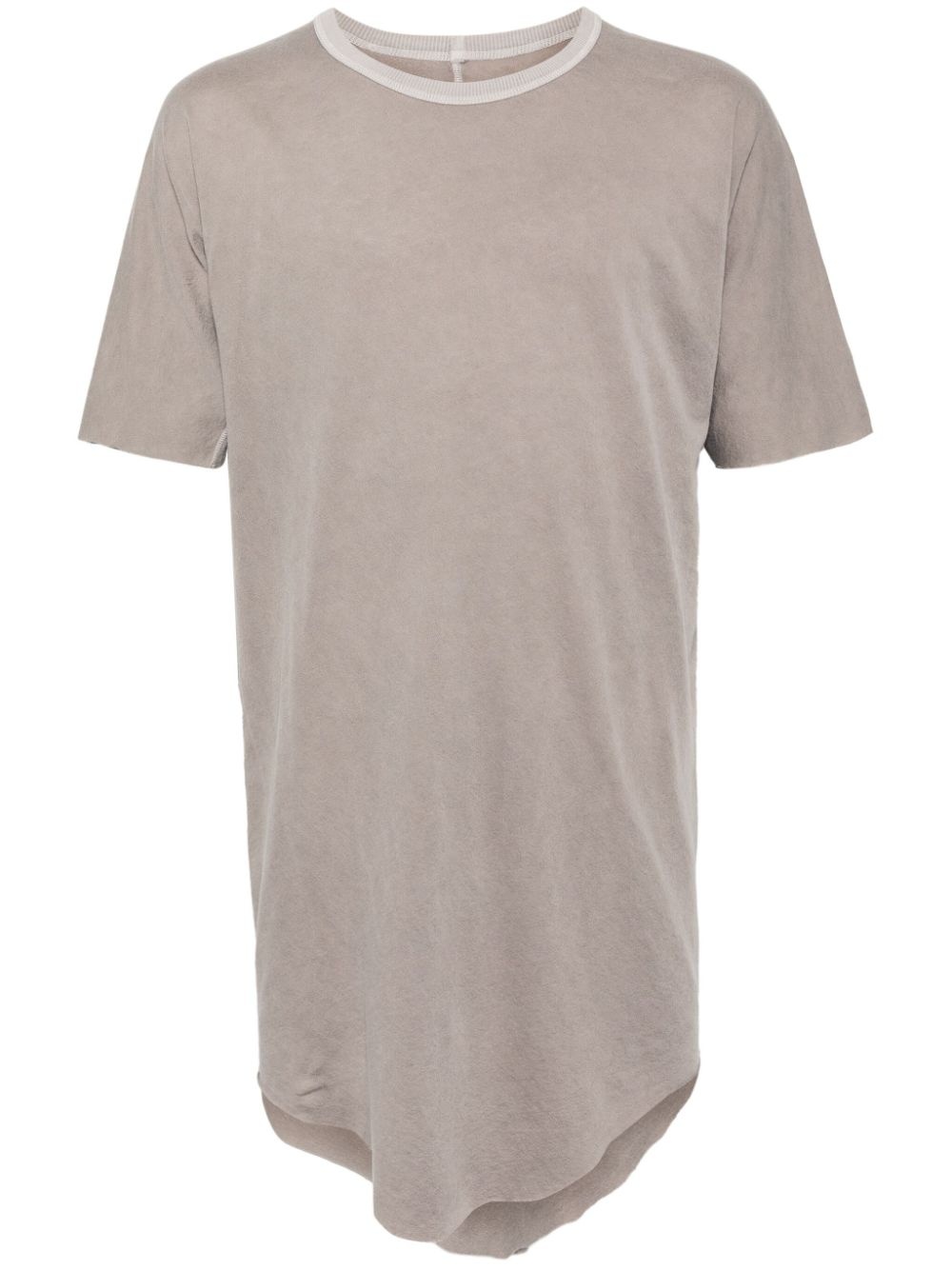round-neck T-shirt Highlights - Light grey - Cotton - Crew neck - Short sleeves - Curved hem - Raw edge Imported Composition Cotton 100% SIZE & FIT Model measurements Height 6 ft 2 in(1.88 m) Bust/Chest 34.25 in(87 cm) Hips 34.64 in(88 cm) Waist 26.77 in(68 cm) FittingInformation Designed for a relaxed fit, this piece allows for comfort and movement when worn Made from a lightweight non-stretch fabric, this piece offers minimal elasticity when worn