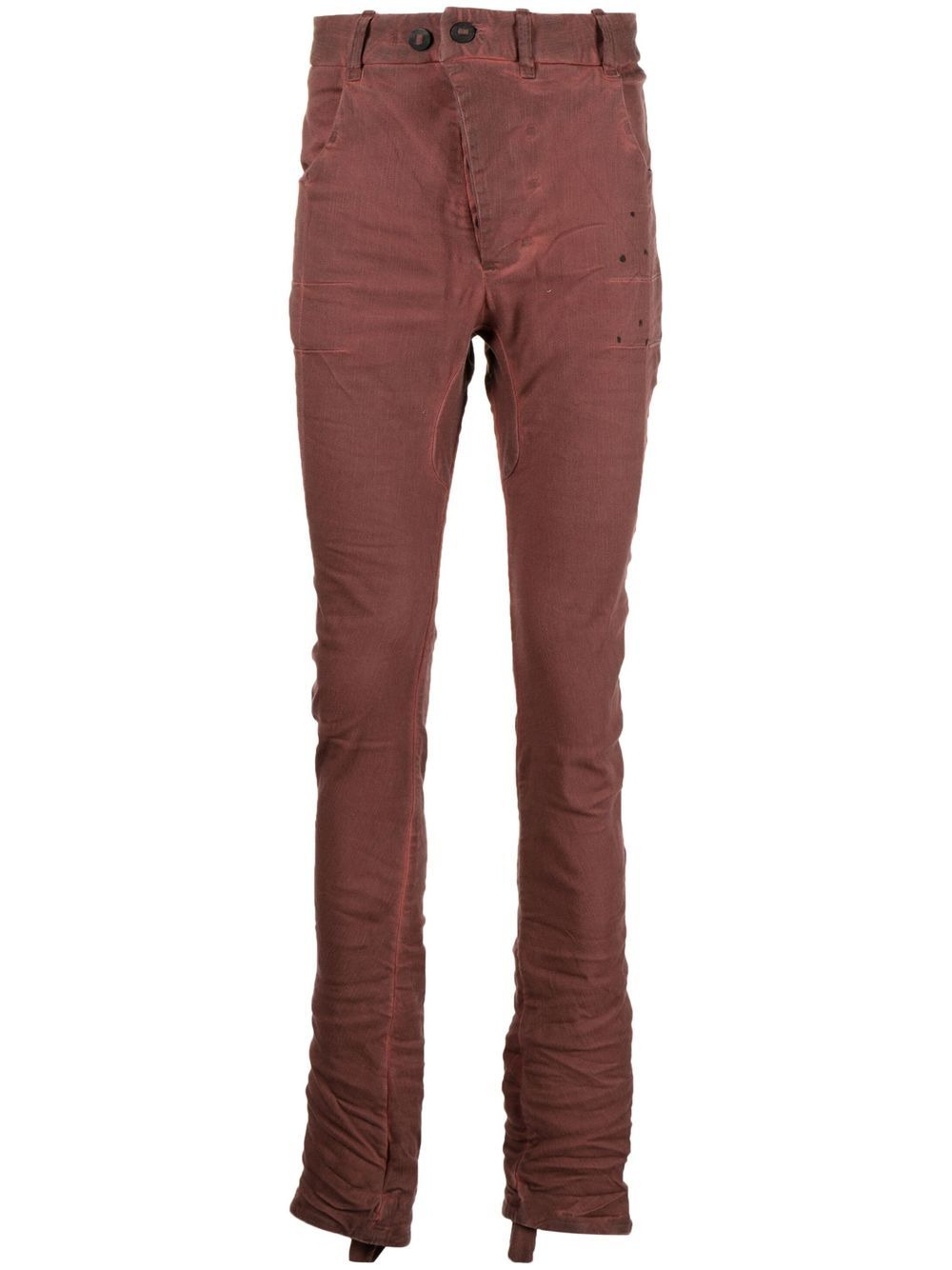 slim-cut denim jeans bordeaux red cotton blend front button fastening two diagonal pockets to the sides two rear patch pockets skinny cut Imported Composition Cotton 98%, Lycra 2% SIZE & FIT Model measurements Height 6 ft 2 in(1.89 m) Bust/Chest 35.82 in(91 cm) Hips 37.4 in(95 cm) Waist 33.07 in(84 cm) Washing instructions Hand Wash