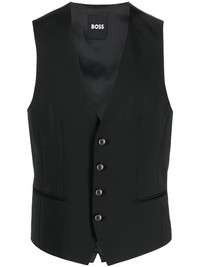 adjustable cotton-blend waistcoat Highlights - Black - Cotton blend - V-neck - Front button fastening - Sleeveless - Two front jetted pockets - Adjustable strap to the rear Imported Composition Outer: Cotton 74%, Polyester 22%, Elastane 4% Lining: Polyester 95%, Elastane 5% SIZE & FIT Model measurements Height 6 ft 0 in(1.84 m) Bust/Chest 36.22 in(92 cm) Hips 35.43 in(90 cm) Waist 26.77 in(68 cm) FittingInformation Designed for a slim fit, offering a comfortable fit that sits just away from the body The adjustable tabs allow for fitted preferences Made from a midweight stretch fabric, this piece offers elasticity and flexibility when worn This piece fits true to size – take your usual size