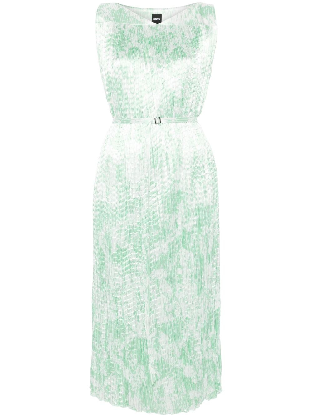 belted midi dress Highlights - Light green - Buckle fastening - Full lining - V-neck - Sleeveless Imported Composition Lining: Viscose 100% Outer: Recycled Polyester 60%, Polyester 40%