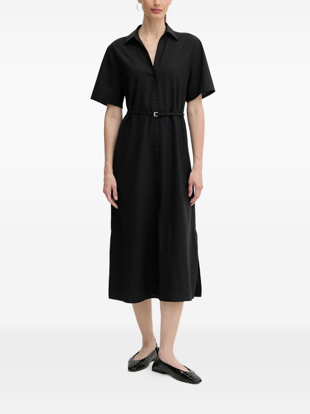 belted midi shirt dress Highlights - Black - Collared neckline - Button fastening - Short sleeves - Side slits Imported Composition Virgin Wool 100% Washing instructions Read Manufacturer Guidelines