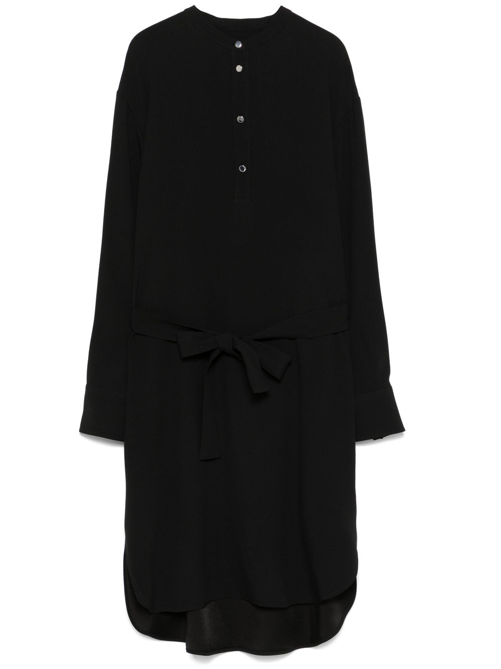 belted mini dress Highlights - Black - Crepe texture - Belted waist - Short front button fastening - Band collar - Long sleeves - Buttoned-cuff sleeves - Detachable belt - Two side inset pockets - Short side slits - Unlined - Curved hem - Knee-length Imported Composition Outer: Acetate 72%, Viscose 28% Lining: Viscose 100% SIZE & FIT Model measurements Height 5 ft 11 in(1.8 m) Bust/Chest 31.49 in(80 cm) Hips 36.61 in(93 cm) Waist 24.4 in(62 cm) FittingInformation Designed to be unstructured, offering a loose fit throughout The adjustable tie waist gives a more adaptable and personalised fit Made from a midweight non-stretch fabric