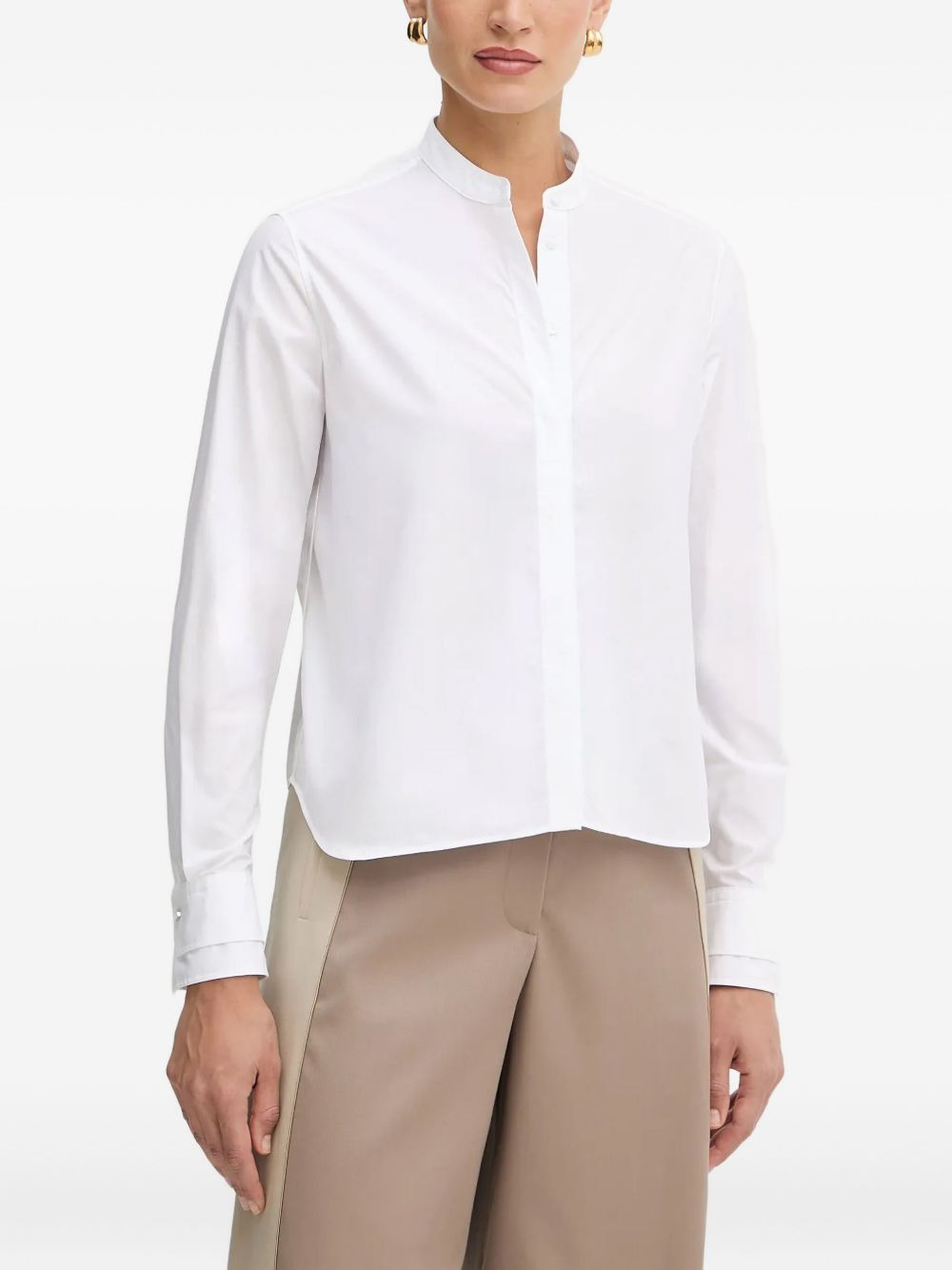 stand-collar shirt Highlights - White - Stand collar - Long sleeves - Concealed button fastening - Squared cuffs Imported Composition Cotton 100% Washing instructions Read Manufacturer Guidelines