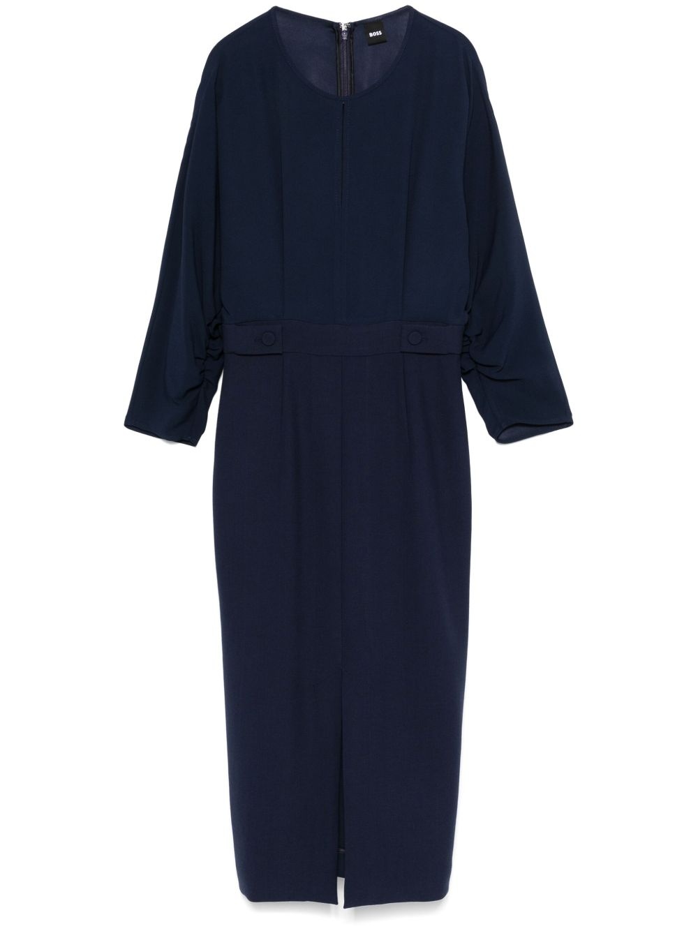 button-tab midi dress Highlights - Navy blue - Concealed rear hook and zip fastening - Crew neck - Keyhole neck - Front slit Imported Composition Outer: Viscose 67%, Polyester 29%, Elastane 4% Lining: Polyester 55%, Viscose 45% Washing instructions Dry Clean Only