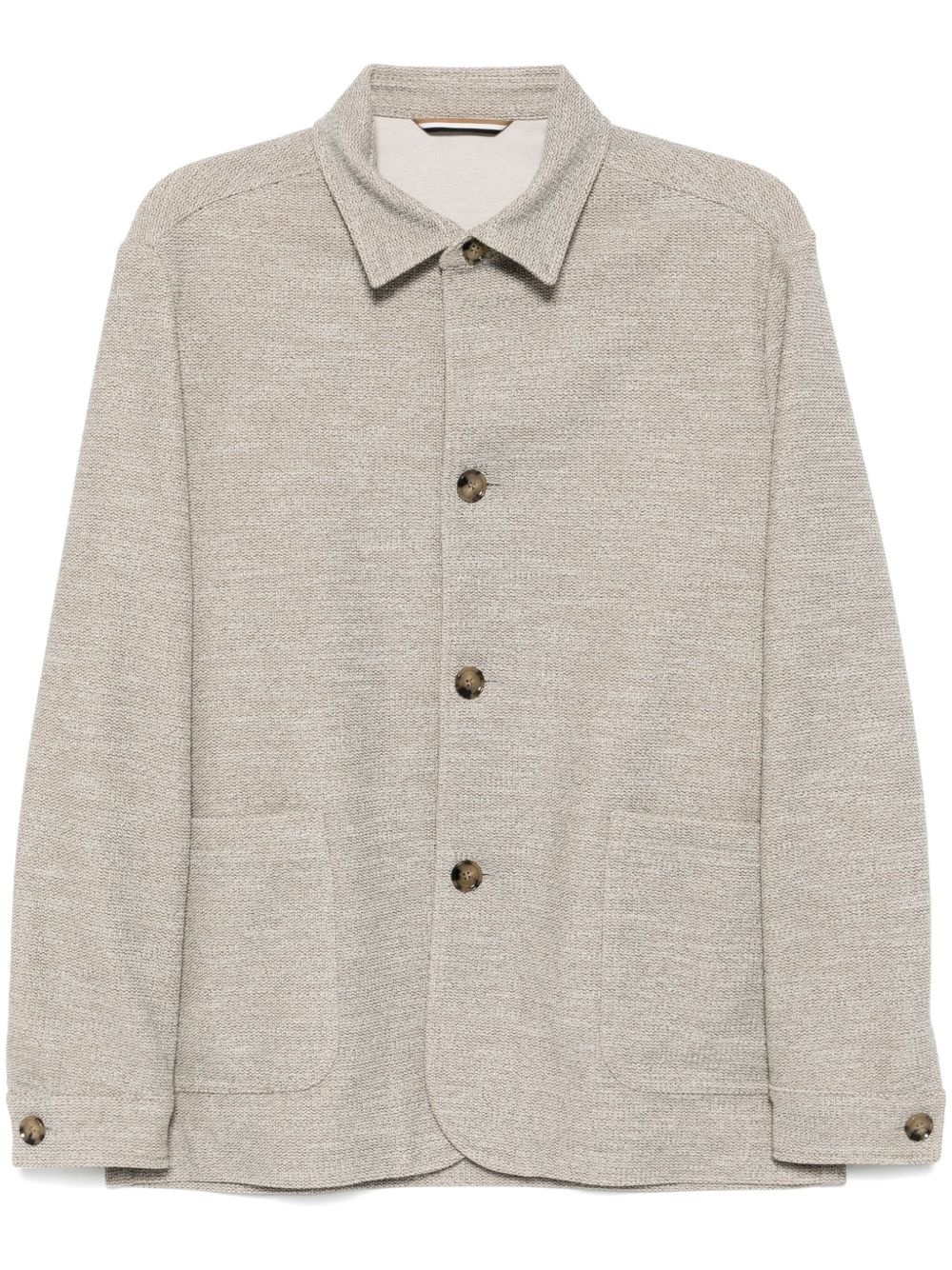 button-up jacket Highlights - Taupe grey - Front button fastening - Two front patch pockets - Buttoned cuffs Imported Composition Cotton 58%, Polyester 42% SIZE & FIT Model measurements Height 6 ft 2 in(1.87 m) Bust/Chest 33.07 in(84 cm) Hips 35.43 in(90 cm) Waist 26.77 in(68 cm) FittingInformation Designed for a regular fit, allowing for a comfortably loose fit throughout the body Made from a midweight non-stretch fabric, this piece offers minimal elasticity when worn