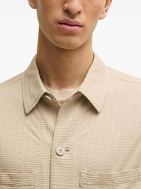 button-up shirt Highlights - Beige - Front button fastening - Two chest patch pockets - Pointed flat collar - Buttoned cuffs Imported Composition Recycled Polyamide 86%, Elastane 14%