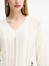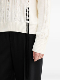 cable-knit sweater Highlights - White - Cable knit - V-neck - Tie detail - Long sleeves - Open knit detail Imported Composition Cotton 100% Washing instructions Read Manufacturer Guidelines