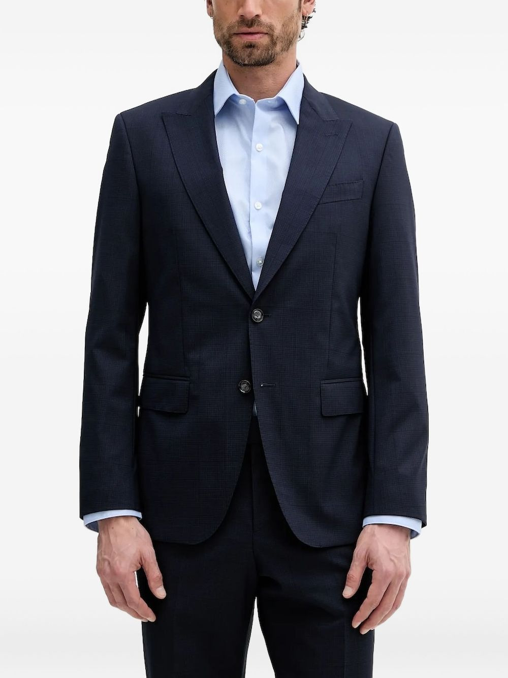 check suit Highlights - Navy blue - Check pattern - Two-button fastening - Notched lapel - Flap pockets Imported Composition Outer: Virgin Wool 97% Spandex/Elastane 3% Lining: Viscose 65%, Polyester 35% Washing instructions Read Manufacturer Guidelines
