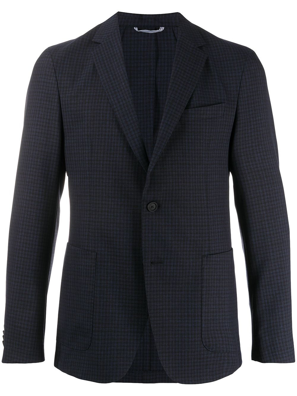 checked single-breasted blazer Highlights - Dark blue/black - Virgin wool - Notched lapels - Front button fastening - Long sleeves - Chest welt pocket - Two patch pockets - Buttoned cuffs Imported Composition Lining: Polyester 100% Outer: Virgin Wool 100% SIZE & FIT Model measurements Height 6 ft 2 in(1.87 m) Bust/Chest 37.79 in(96 cm) Hips 37.79 in(96 cm) Waist 30.31 in(77 cm) FittingInformation This piece fits true to size. We recommend you get your regular size Classic fit Made with a mid-weight non-stretch fabric Washing instructions Machine Wash