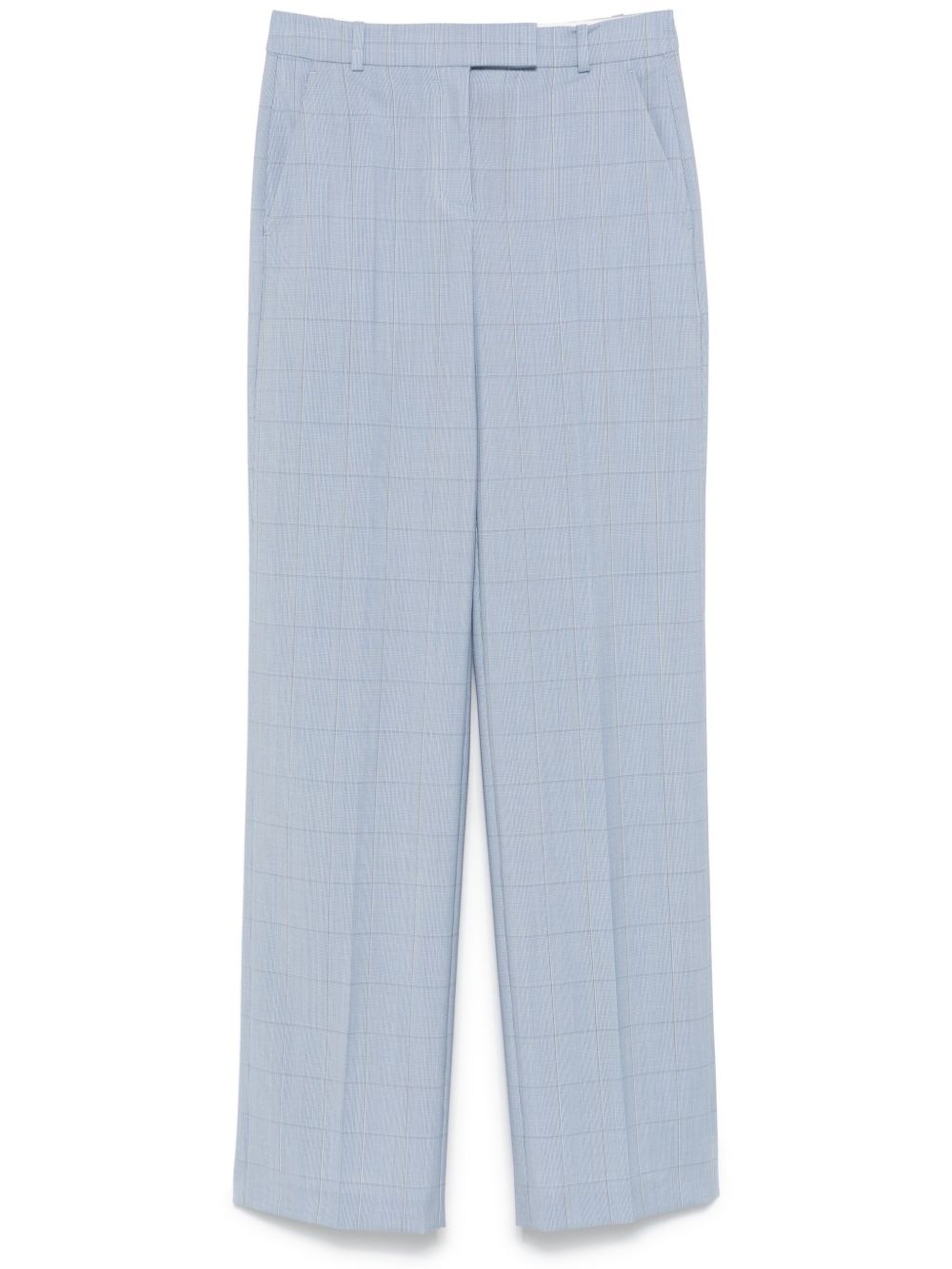 checked virgin wool trousers Highlights - Pastel blue - Concealed front button, hook and zip fastening - Two side slash pockets - Two rear welt pockets - Belt loops Imported Composition Outer: Virgin Wool 100% Lining: Cotton 100% Washing instructions Dry Clean Only