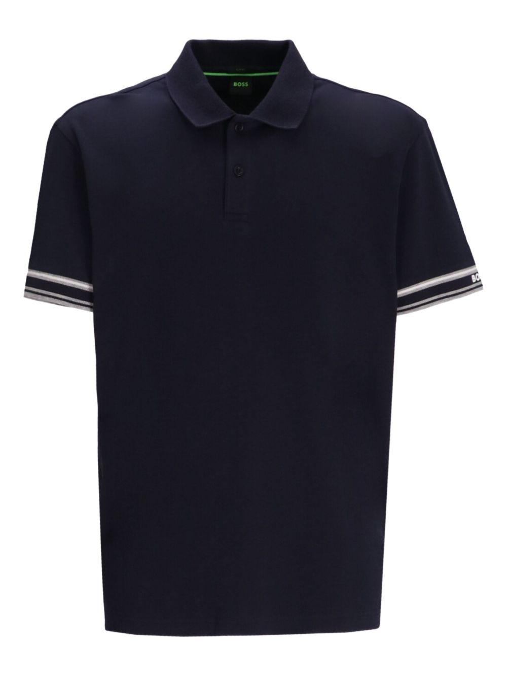 contrast-stripe polo shirt Highlights - Dark blue - Front button placket - Contrast stripe detailing - Polo collar - Short sleeves Imported Composition Cotton 100% Washing instructions Machine Wash