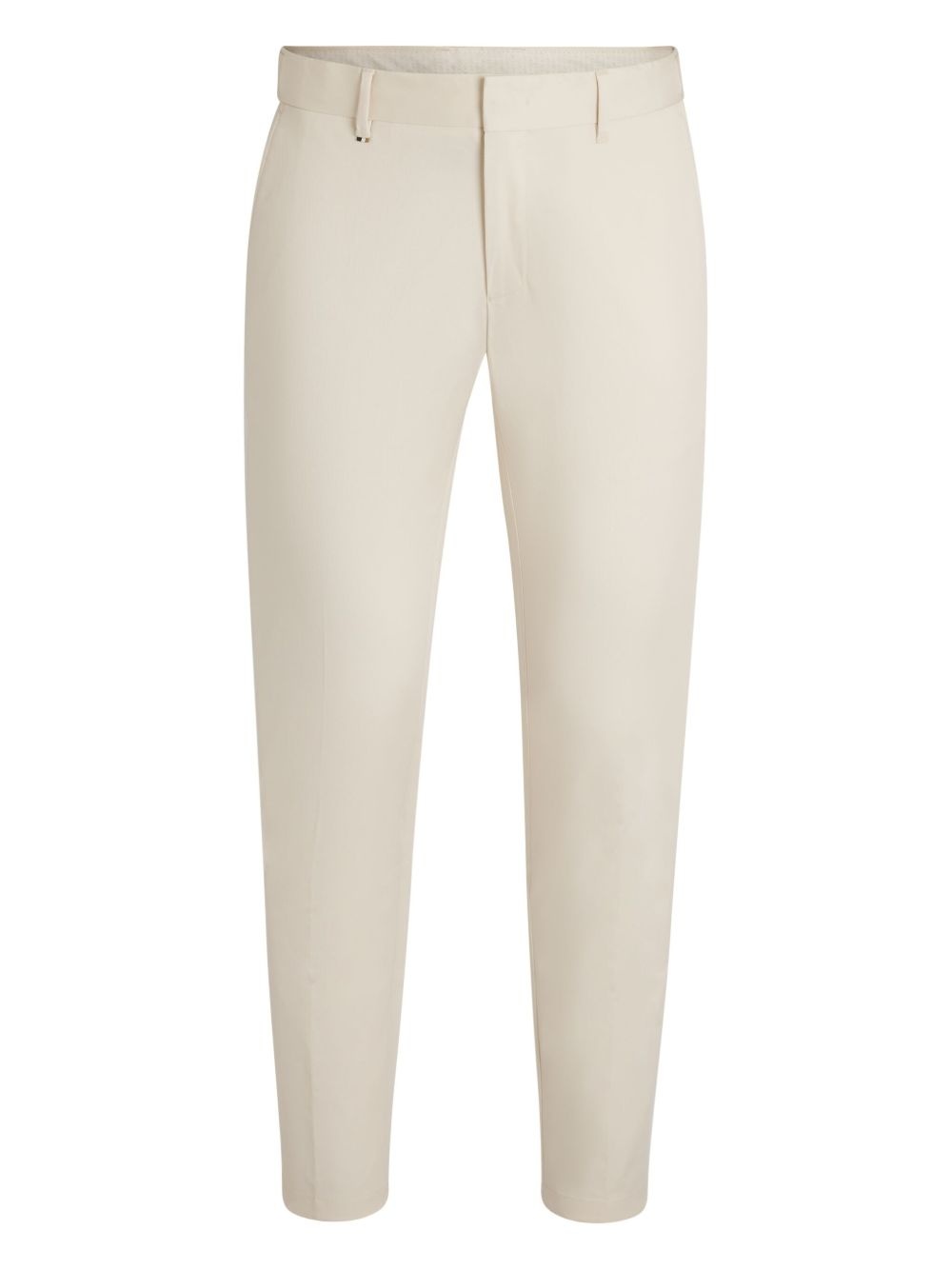 cotton trousers Highlights - Light beige - Concealed front fastening - Two side slit pockets - Tapered leg Imported Composition Cotton 98%, Elastane 2%