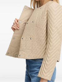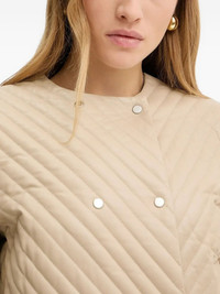 diagonal-quilted leather jacket Highlights - Beige - Leather - Diagonal quilting - Snap button fastening - Round neck Imported Composition Outer: Lamb Skin 100% Lining: Polyester 55%, Viscose 45% Washing instructions Specialist Cleaning
