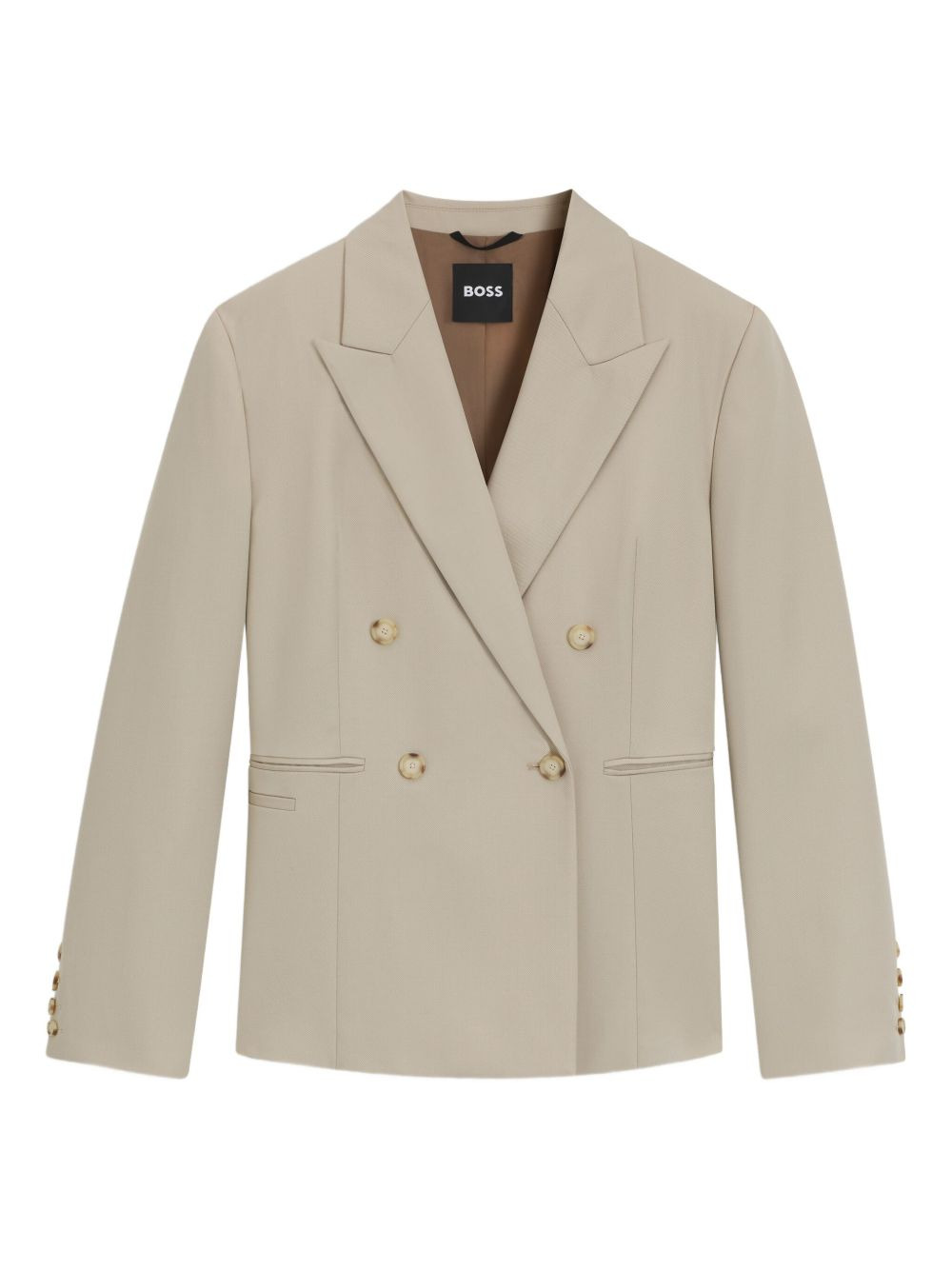 double-breasted blazer Highlights - Beige - Double-breasted button fastening - Notched lapels - Long sleeves - Buttoned cuffs Imported Composition Virgin Wool 100% Washing instructions Read Manufacturer Guidelines