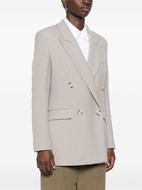 double-breasted blazer Highlights - Light grey - Interlock weave - Double-breasted button fastening - Peak lapels - Long sleeves - Buttoned-cuff sleeves - Chest welt pocket - Two side flap pockets - Internal slip pocket - Full lining - Straight hem Imported Composition Outer: Polyester 29%, Elastane 4% Lining: Viscose 100% SIZE & FIT Model measurements Height 5 ft 10 in(1.77 m) Bust/Chest 32.28 in(82 cm) Hips 35.03 in(89 cm) Waist 25.19 in(64 cm) FittingInformation Designed for a relaxed fit, this piece allows for comfort and movement when worn The internal shoulder pads offer a structured shape Made from a midweight fabric