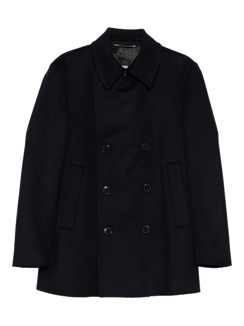 double-breasted coat Highlights - Dark blue - Double-breasted - Button fastening - Side pockets - Long sleeves Imported Composition Outer: Recycled Wool 90%, Cashmere 10% Lining: Viscose 100% Washing instructions Dry Clean Only