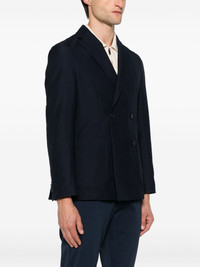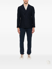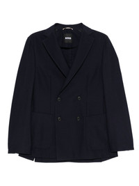 double-breasted jacket Highlights - Navy blue - Double-breasted fastening - Patch pockets - Peak lapels - Long sleeves Imported Composition Outer: Cotton 51%, Wool 49% Lining: Polyester 65%, Cotton 35% SIZE & FIT Model measurements Height 6 ft 2 in(1.87 m) Bust/Chest 37.79 in(96 cm) Hips 37.79 in(96 cm) Waist 30.31 in(77 cm) FittingInformation Designed for a slim fit, offering a comfortable fit that sits just away from the body The vented hem offers movement at the rear Made from a midweight non-stretch fabric Washing instructions Dry Clean Only