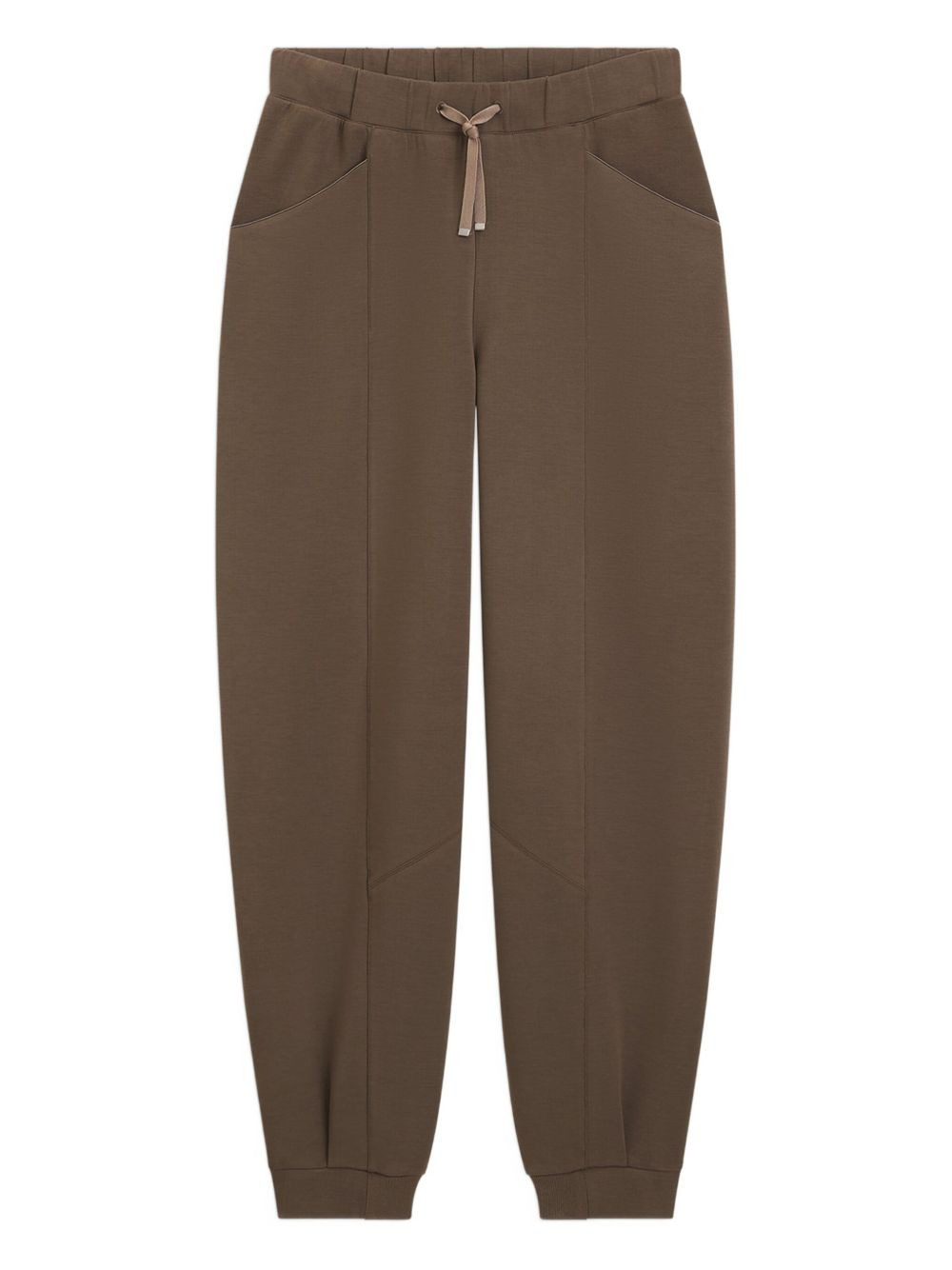 drawstring panelled trousers Highlights - Brown - Drawstring fastening - Panelled design - Elasticated hem - Elasticated waistband Imported Composition Polyester 100%, Modal 100%, Elastane 100% Washing instructions Hand Wash