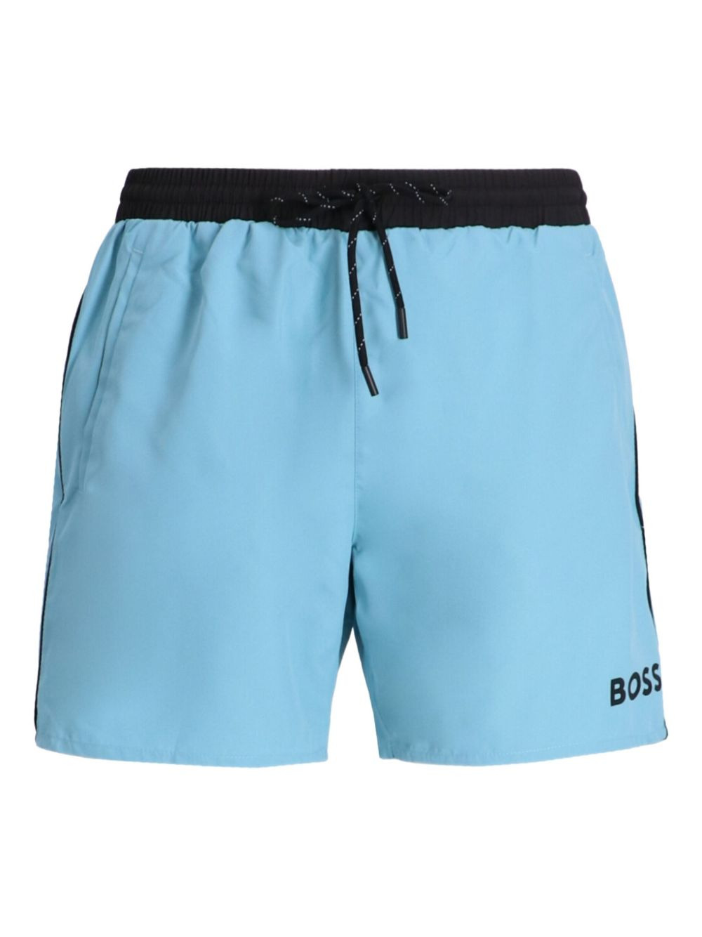 drawstring swim shorts Highlights - Light blue - Elasticated waistband - Side pockets - Logo detail - Back pocket - Be mindful to try on swimwear over your own garments. Imported Composition Polyester 100% Washing instructions Machine Wash