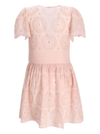 embroidered short-sleeve dress Highlights - Blush pink - Intricate embroidery - Button placket - Gathered skirt - Short sleeves Imported Composition Cotton 100% Washing instructions Read Manufacturer Guidelines
