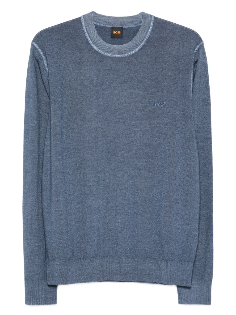 embroidered wool sweater Highlights - Blue - Wool - Crew neck - Long sleeves - Embroidered logo - Straight hem Imported Composition Virgin Wool 100% Washing instructions Machine Wash
