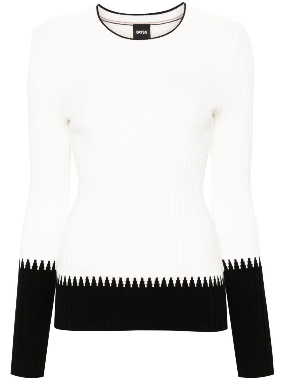Fedrina ribbed-knit top Highlights - White/black - Recycled viscose blend - Ribbed knit - Colour-block design - Contrasting trim - Crew neck - Long sleeves - Straight hem Imported Composition Recycled Viscose 70%, Recycled Polyester 30% SIZE & FIT Model measurements Height 5 ft 10 in(1.78 m) Bust/Chest 29.92 in(76 cm) Hips 34.64 in(88 cm) Waist 23.62 in(60 cm) FittingInformation Designed for a slim fit that sits just away from the body offering a close yet comfortable fit Made with a midweight knit, this piece offers some stretch This piece fits true to size – take your usual size Washing instructions Hand Wash