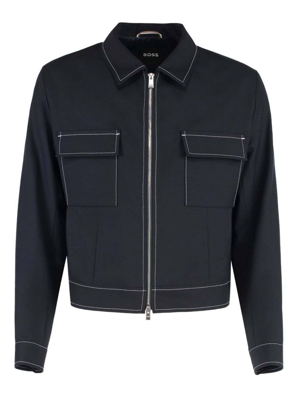 flap-pocket contrast-stitching jacket Highlights - Blue - Two flap pockets - Decorative stitching - Zip fastening - Virgin wool Imported Composition Virgin Wool 100%, Viscose 100%