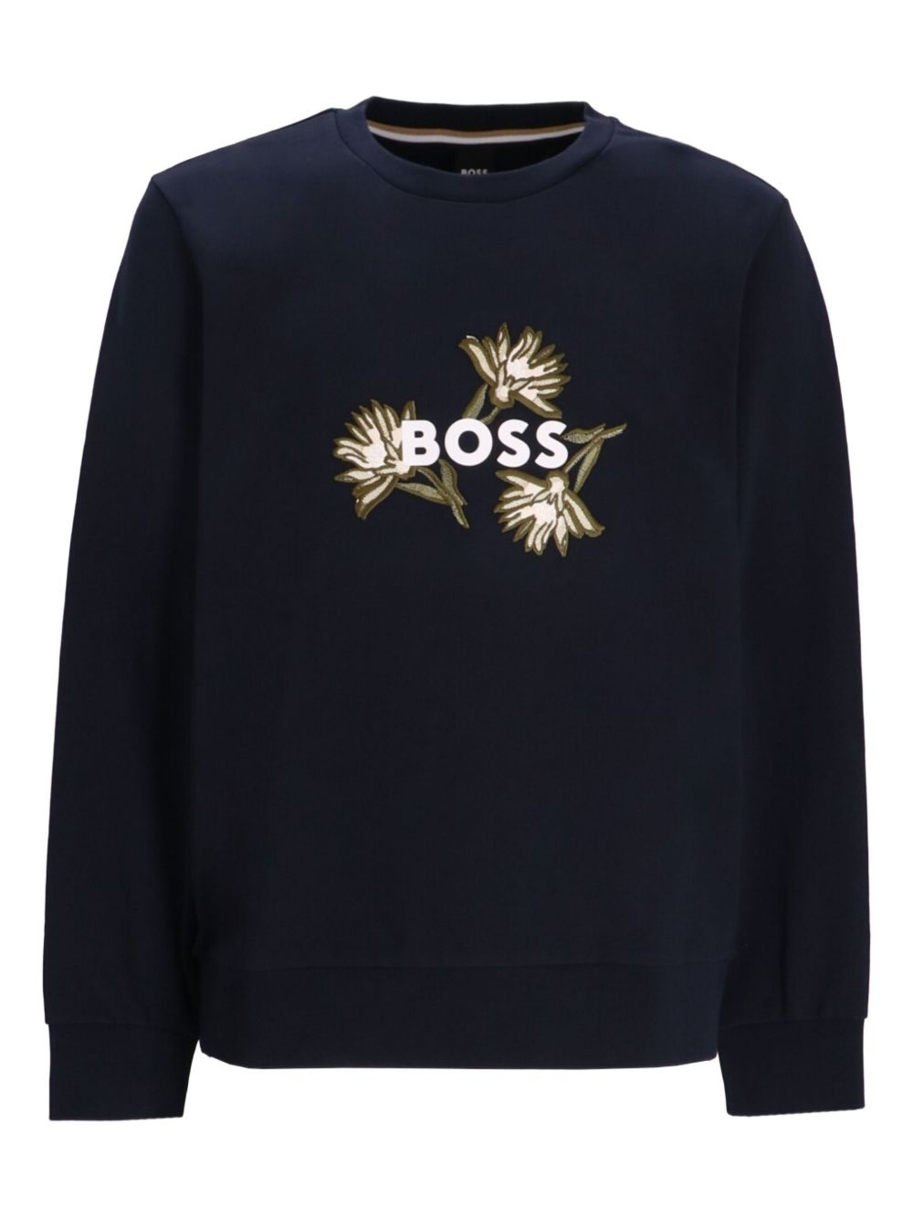 floral-embroidered sweatshirt Highlights - Navy blue - Logo print to the front - Crew neck - Long sleeves - Straight hem Imported Composition Cotton 100%