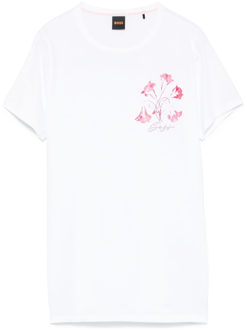 floral-print T-shirt Highlights - White - Crew neck - Short sleeves - Straight hem Imported Composition Cotton 100% SIZE & FIT Model measurements Height 5 ft 10 in(1.78 m) Bust/Chest 33.85 in(86 cm) Hips 36.61 in(93 cm) Waist 26.77 in(68 cm) FittingInformation Designed for a slim fit that sits just away from the body offering a close yet comfortable fit Made from a midweight non-stretch fabric, this piece offers minimal elasticity when worn