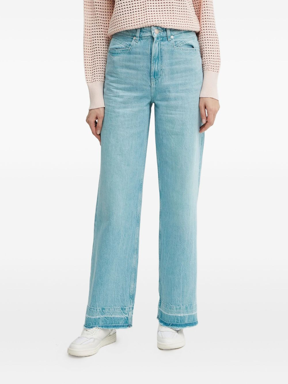 frayed-hem jeans Highlights - Light blue - Frayed hem - High waist - Classic five pockets - Button fly - Belt loops Imported Composition Fabric 100% Washing instructions Read Manufacturer Guidelines