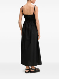 gathered-bodice midi dress Highlights - Black - Organic cotton - Ruffled neckline - Gathered bodice - Sleeveless Imported Composition Organic Cotton 100% Washing instructions Read Manufacturer Guidelines