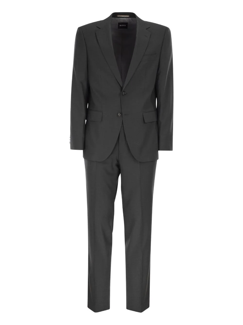 grey single-breasted suit Highlights - Dark grey - Flap pockets - Buttoned cuffs - Notched lapels Imported Composition Outer: Polyester 44%, Wool 30%, Viscose 23%, Elastane 3% Lining: Polyester 95%, Spandex/Elastane 5% Washing instructions Read Manufacturer Guidelines