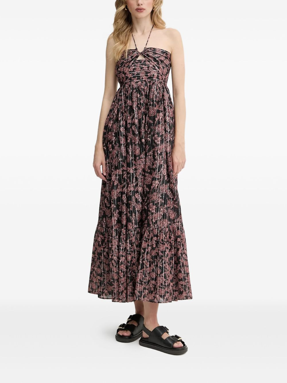 halterneck floral-print maxi dress Highlights - Black - Floral print - Halterneck - Smocked bodice - Tiered skirt - Metallic thread Imported Composition Cotton 97%, Fabric 3% Washing instructions Machine Wash
