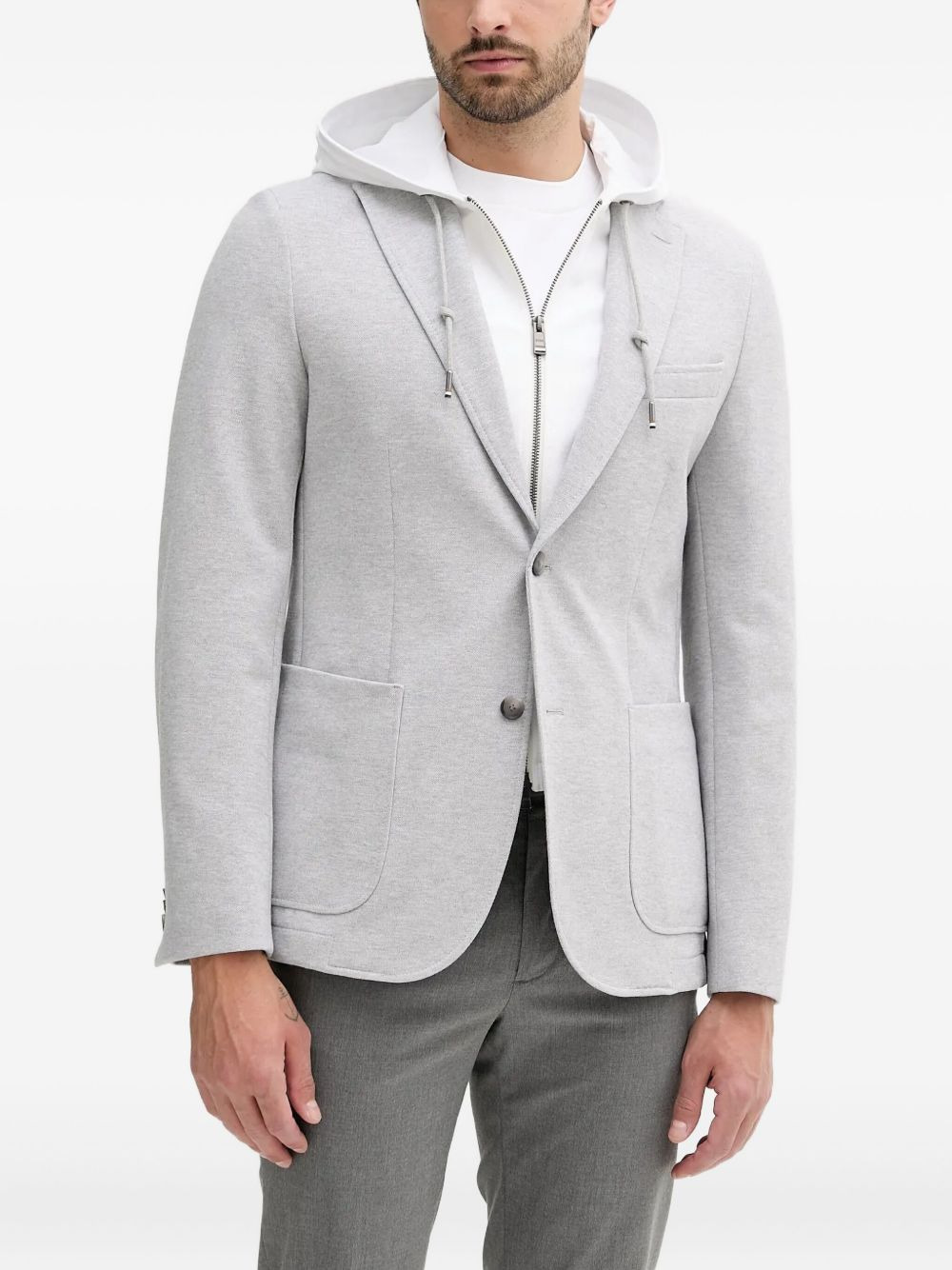 Hanry hooded jacket Highlights - Light grey - Hooded design - Two patch pockets - Button fastening - Long sleeves - Single-breasted design Imported Composition Outer: Cotton 82%, Polyamide 15%, Elastane 3% Lining: Polyester 65%, Cotton 35% Washing instructions Read Manufacturer Guidelines
