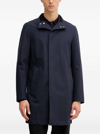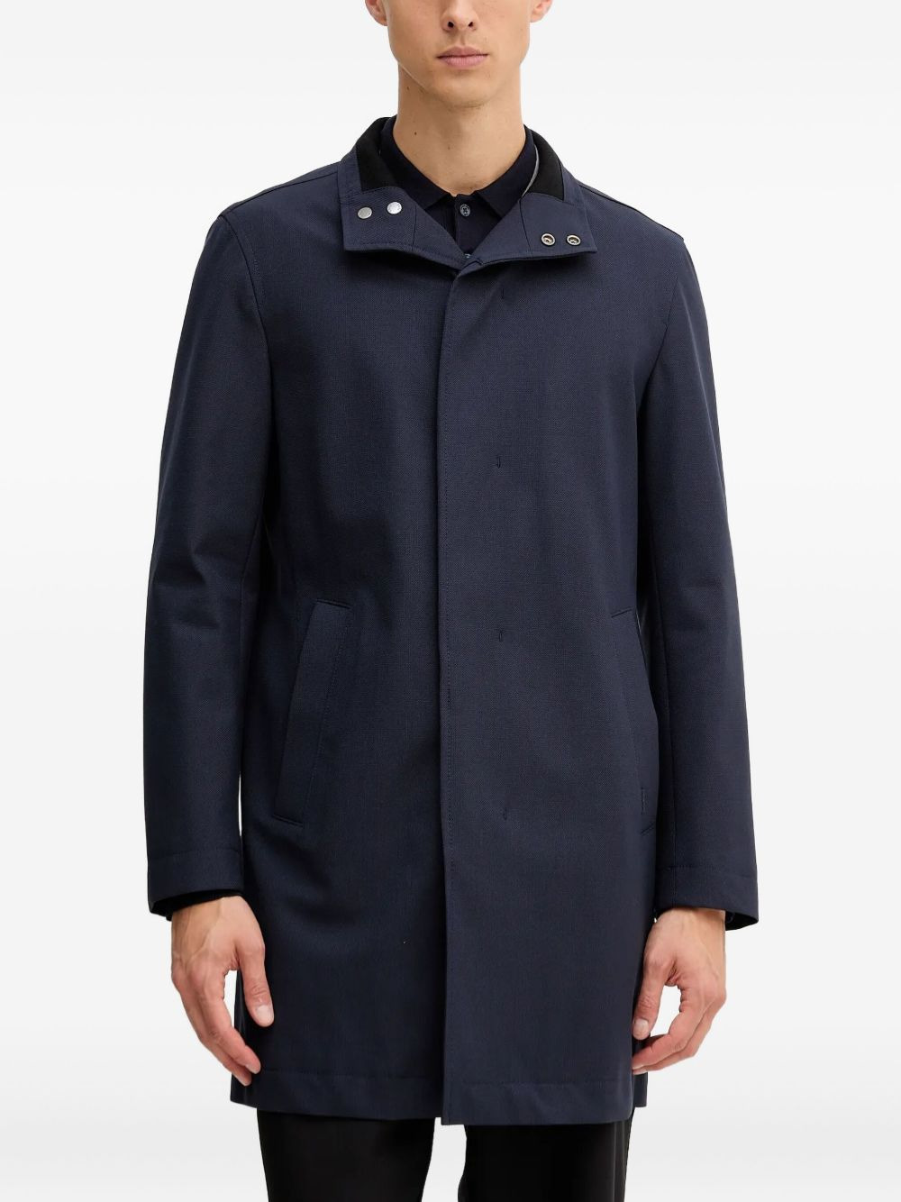 high-neck buttoned coat Highlights - Navy blue - High neck - Button fastening - Welt pockets - Long sleeves - Straight hem Imported Composition Outer: Polyester 47%, Wool 29%, Viscose 20%, Elastane 4% Lining: Polyester 95%, Elastane 5% Washing instructions Dry Clean Only