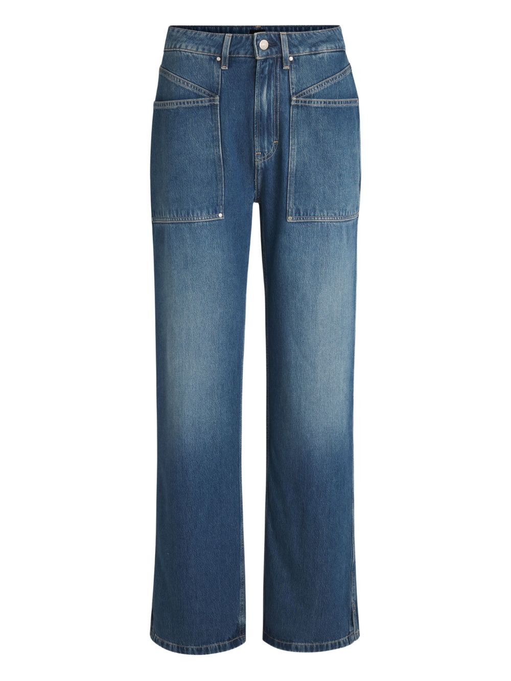 high-waisted jeans Highlights - Blue - Double-pocket design - Zip fly - Button fastening Imported Composition Cotton 53%, Lyocell 47% Washing instructions Read Manufacturer Guidelines