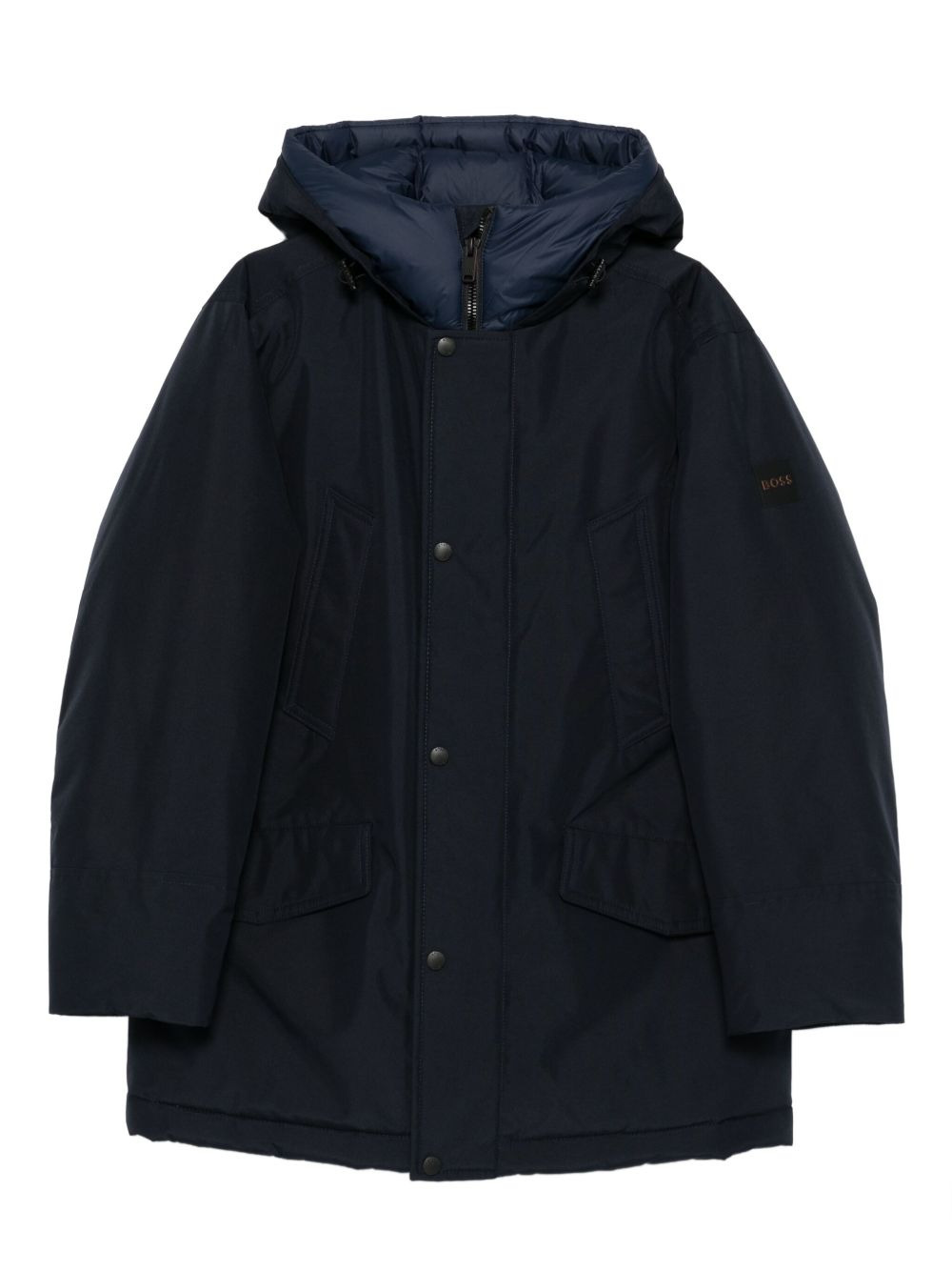 hooded button-fastening jacket Highlights - Navy blue - Hooded neckline - Button fastening - Flap pockets - Logo patch Imported Composition Lining: Recycled Polyester 100%, Polyamide 100% Outer: Polyester 100% SIZE & FIT Model measurements Height 6 ft 2 in(1.87 m) Bust/Chest 36.41 in(92.5 cm) Hips 37 in(94 cm) Waist 29.52 in(75 cm) Washing instructions Read Manufacturer Guidelines