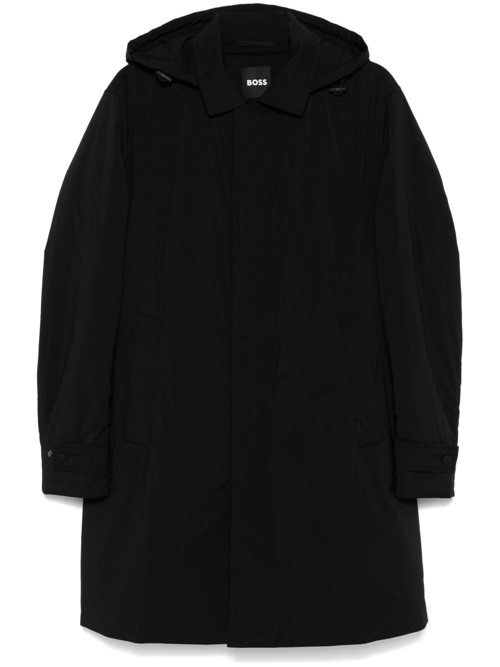 hooded coat Highlights - Black - Lightweight - Water-repellent finish - Insulated design - Concealed front press-stud fastening - Detachable drawstring hood - Classic collar - Long sleeves - Press-stud fastening cuffs - Two front welt pockets - Central rear vent - Multiple internal slip pockets - Ful lining - Straight hem - Mid-length Imported Composition Outer: Polyamide 90%, Elastane 10% Lining: Polyester 100% Washing instructions Dry Clean Only