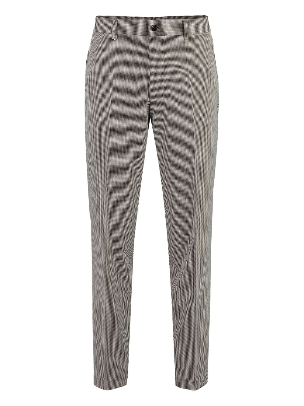 houndstooth-pattern trousers Highlights - Beige and black - Houndstooth pattern - Two back buttoned welt-pockets - Belt loops Imported Composition Polyester 66%, Viscose 26%, Elastane 6%, Other fibres 2% Washing instructions Read Manufacturer Guidelines