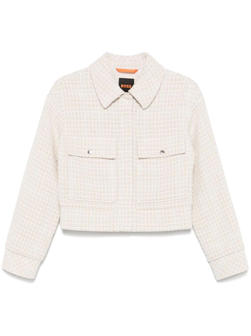 interwoven-design jacket Highlights - Light beige/cream white - Recycled cotton blend - Interwoven design - Front press-stud fastening - Classic collar - Long sleeves - Press-stud fastening cuffs - Two chest flap pockets - Full lining - Rear elasticated hem Imported Composition Outer: Recycled Cotton 62%, Polyester 22%, Other fibres 7%, Polyacrylic 6%, Viscose 3% Lining: Viscose 100% SIZE & FIT Model measurements Height 5 ft 11 in(1.8 m) Bust/Chest 33.07 in(84 cm) Hips 37.4 in(95 cm) Waist 25.19 in(64 cm) FittingInformation Designed for a relaxed fit, this piece allows for comfort and movement when worn The elasticated hem allows for movement and a comfortable fit Made from a midweight non-stretch fabric