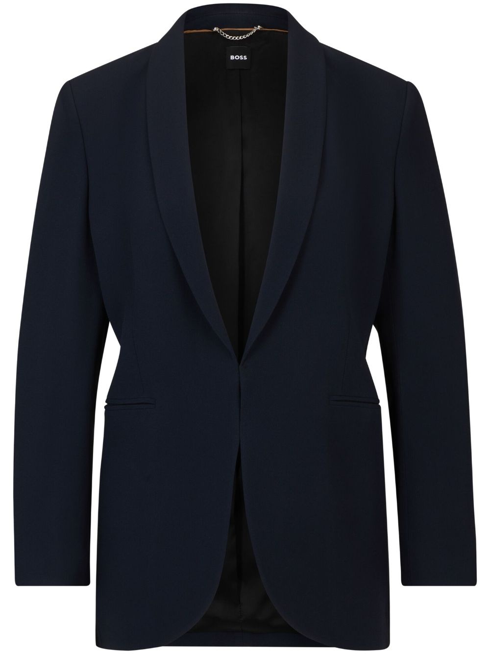Jirea single-breasted blazer Highlights - Navy blue - Shawl collar - Long sleeves - Buttoned cuffs - Two front jetted pockets - Full lining Imported Composition Acetate 72%, Viscose 28% Washing instructions Read Manufacturer Guidelines