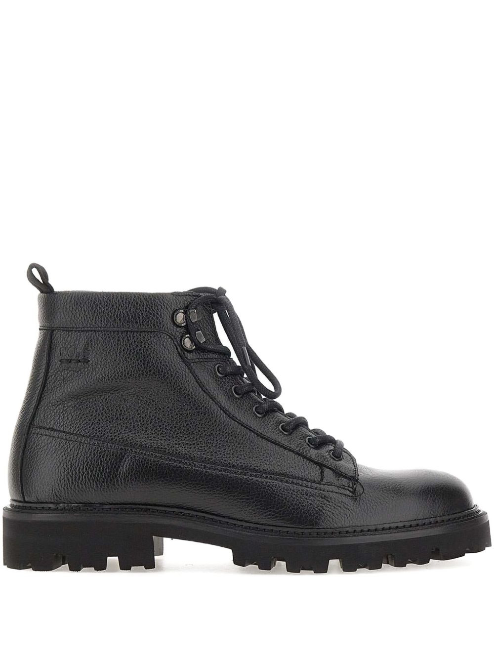 Julyo Halb leather boots Highlights - Black - Logo debossed - Lace-up - Hammered finish - Rear pull tab - Lug sole Imported Composition Outer: Leather 100% Sole: Polyethylene vinyl acetate (PEVA) 100% Lining: Fabric 100% SIZE & FIT Measurement HEEL 1.57 in(4 cm)