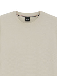knitted crew-neck T-shirt Highlights - Beige - Short sleeves - Crew neck - Knitted construction - Straight hem Imported Composition Lyocell 50%, Cotton 50% Washing instructions Read Manufacturer Guidelines