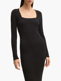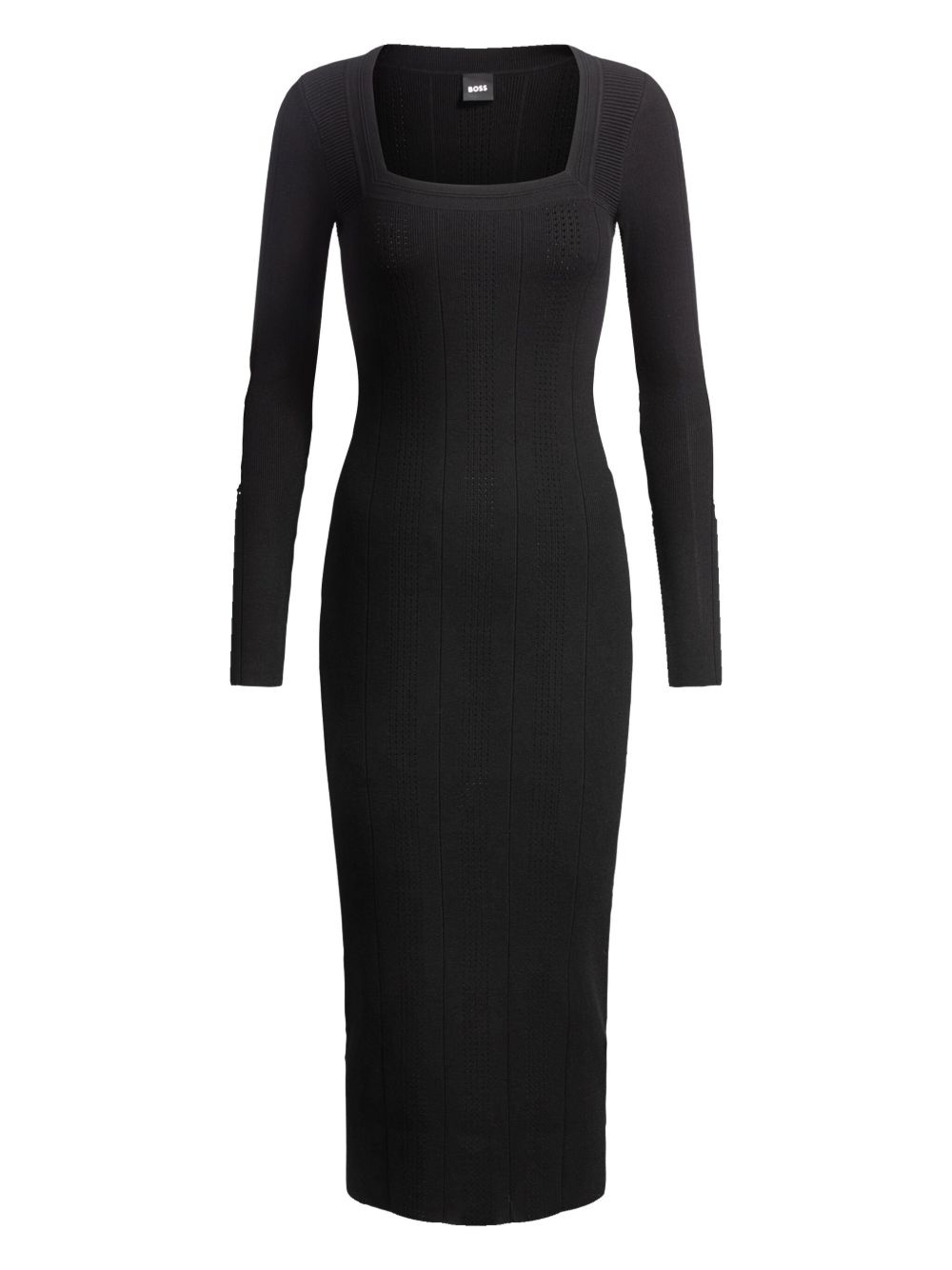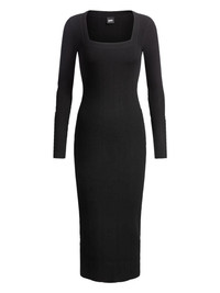 knitted dress Highlights - Black - Square neck - Long sleeves Imported Composition Viscose 72%, Polyester 28%