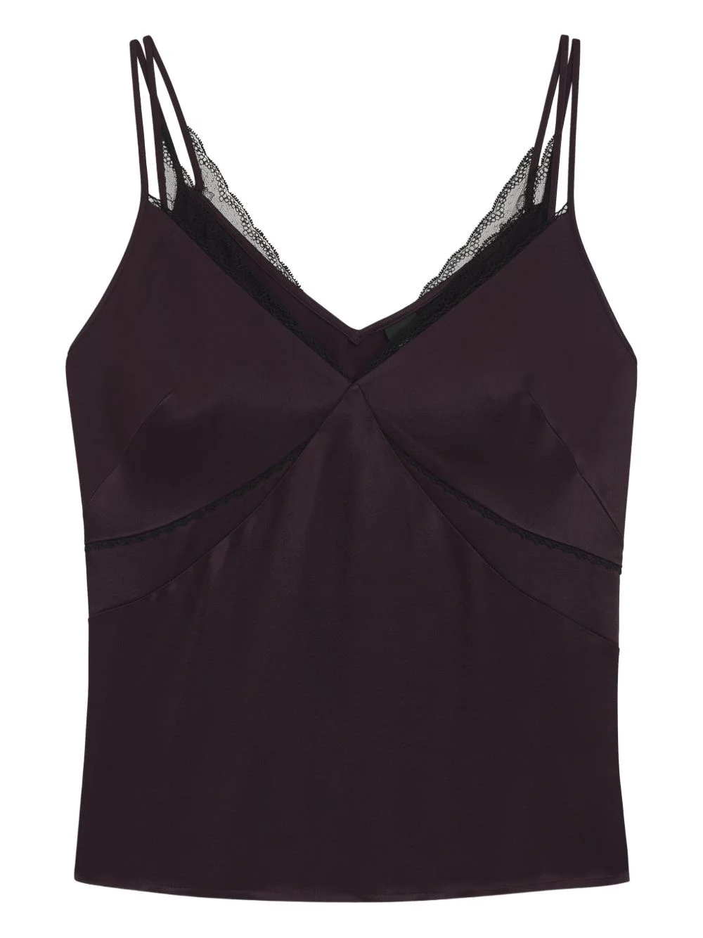 lace-trimmed tank top Highlights - Purple - Lace trim - Spaghetti straps - V-neck Imported Composition Viscose 100% Washing instructions Read Manufacturer Guidelines