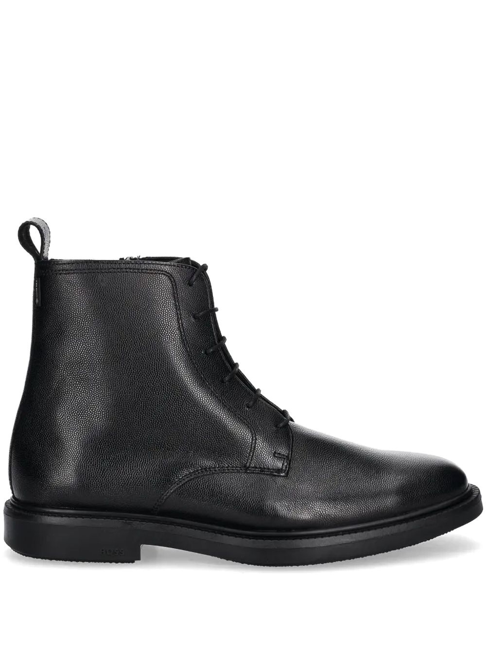 Larry boots Highlights - Black - Front lace-up fastening - Side zip fastening - Pull-tab at the heel - Flat rubber sole Imported Composition Outer: Calf Leather 100% Lining: Calf Leather 100%, Polyurethane 50%, Polyester 50% Sole: Rubber 100%