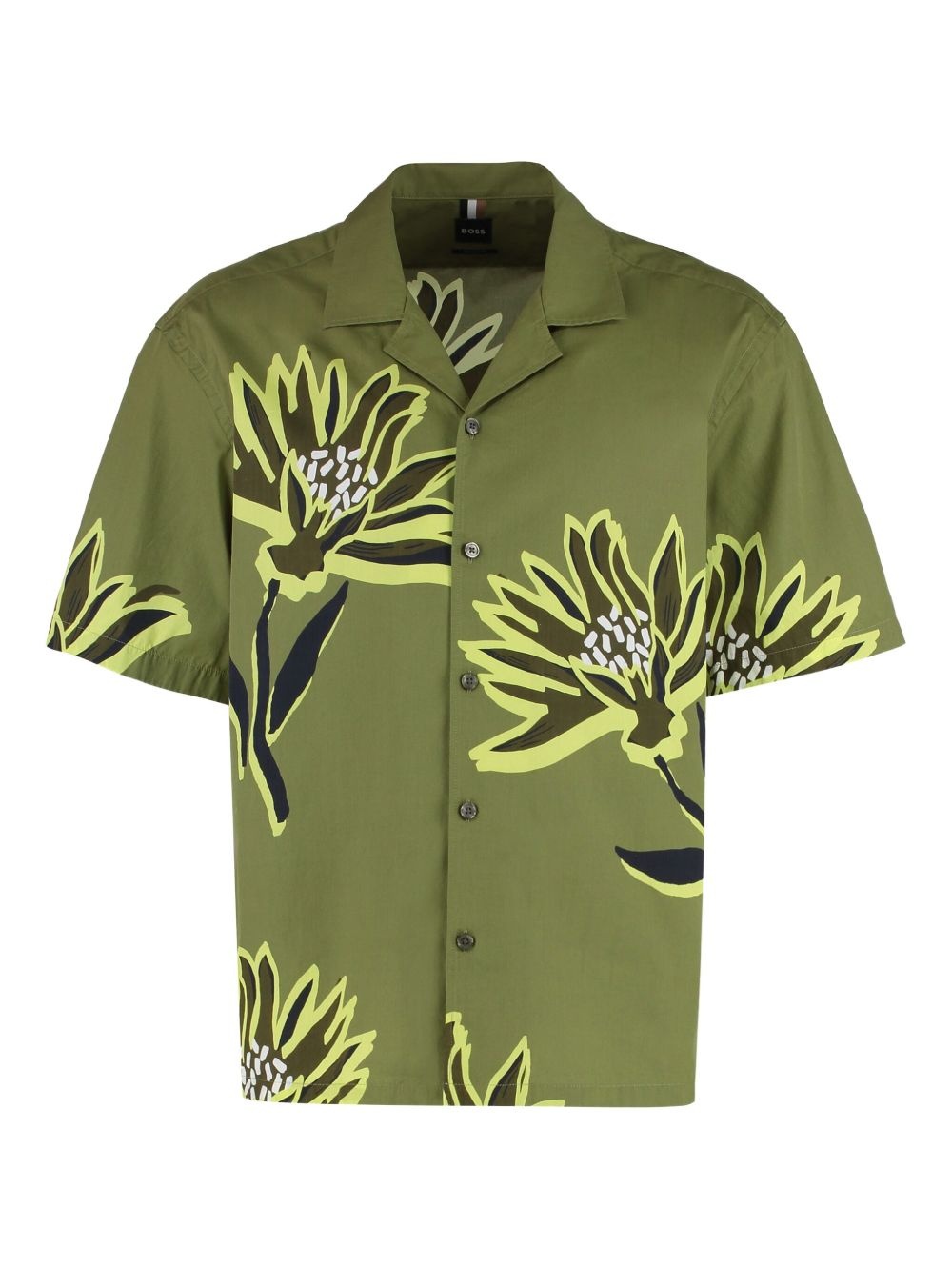 Lars floral-print short-sleeve shirt Highlights - Olive green - Bold floral pattern - Button-up front - Camp collar - Relaxed fit sleeves - Contrasting accents Imported Composition Cotton 100% Washing instructions Machine Wash