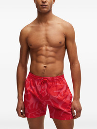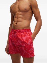 leaf-print swim shorts Highlights - Red/pink - Leaf print - Elasticated drawstring waistband - Two side slit pockets - Rear jetted pocket - Straight hem - Thigh length - Be mindful to try on swimwear over your own garments. Imported Composition Polyamide 100% Washing instructions Read Manufacturer Guidelines